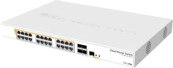 CRS328-24P-4S+RM is a 28 independent port switch, it has 24 Gigabit Ethernet ports, which offer different power output options: Passive PoE, low voltage PoE, 802.3af/at (Type 1 “PoE” / Type 2 “PoE+”) with auto-sensing. PoE-Out is passed over mode B pins (4,5+)(7,8-). The four SFP+ ports provide up to 10 Gbps connectivity options via either optical fiber or Ethernet modules (not included).